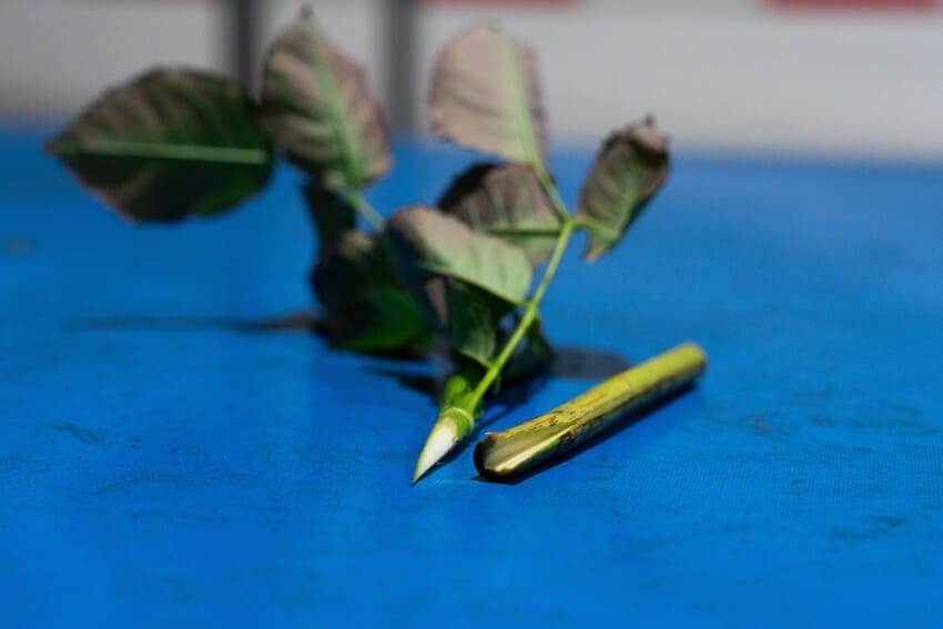 Assembling: The rootstock is banded, and the scion is inserted with the correct pressure for maximum stability.