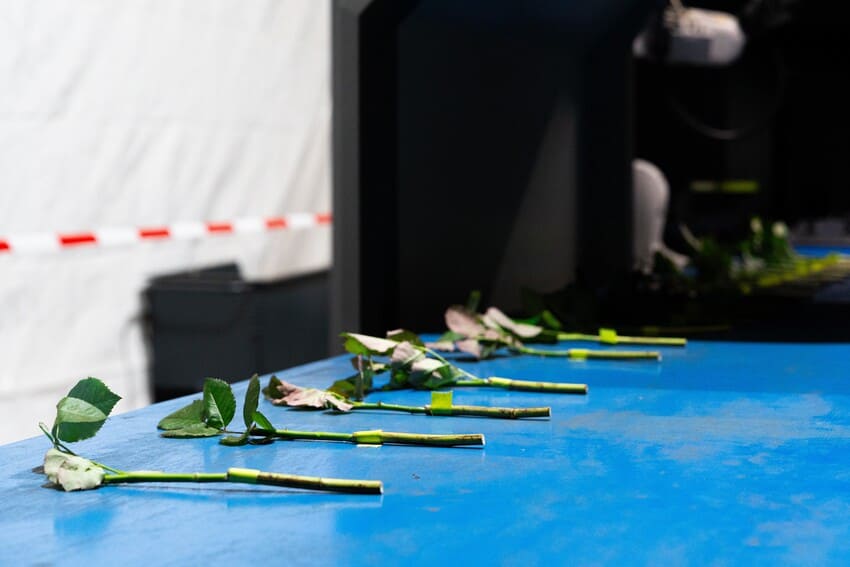The completed graft is placed onto a conveyor belt for easy collection and further processing.