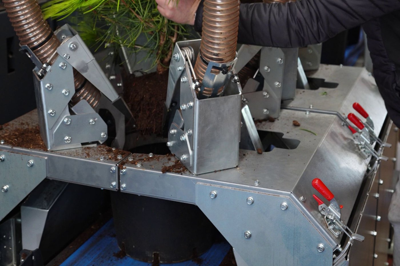 The Tree Transplanter Multi Module is designed for nurseries that require high production capacity. Multiple transplanting modules operate simultaneously, allowing large volumes of trees to be potted efficiently while maintaining consistent quality. The modular design allows the system to be configured and expanded according to your production needs. Get in touch to discover how this system can scale and optimise your nursery workflow.